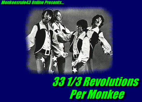 --- The Hawaiian broadcast of 33 1/3 Revolutions Per Monkee was delayed for 2 whole weeks; it was finally shown there on Monday, April 28. Its telecast in Great Britain occured on Saturday, May 24 on BBC2.